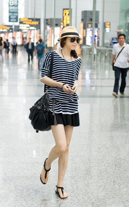 宽松的条纹T恤随意自然,穿起来休闲而率性中又不乏女人味