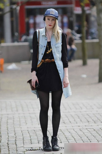 红色棒球帽搭配做旧牛仔上衣正统的英伦街头范儿,帽子反带给人坏坏的感觉Ypy服装批发市场网
