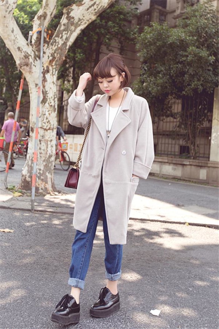 茧形大衣不限制身材,搭配松糕鞋,随性帅气。olL服装批发市场网