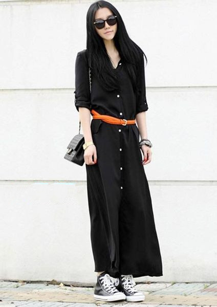 黑色飘逸衬衣长裙bGF服装批发市场网