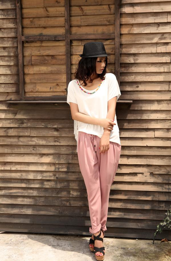 新款女装会呼吸的面料糖果色高档雪纺哈伦裤长裤CNw服装批发市场网