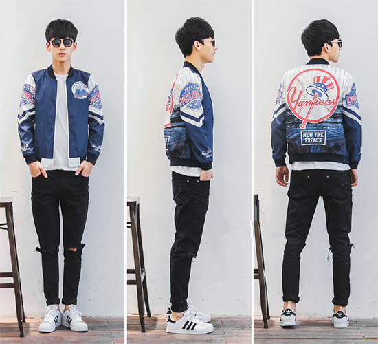 棒球衫搭配破洞休闲裤潮男春装搭配5Sy服装批发市场网