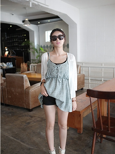 白色可爱针织开衫搭配短裤1IZ服装批发市场网