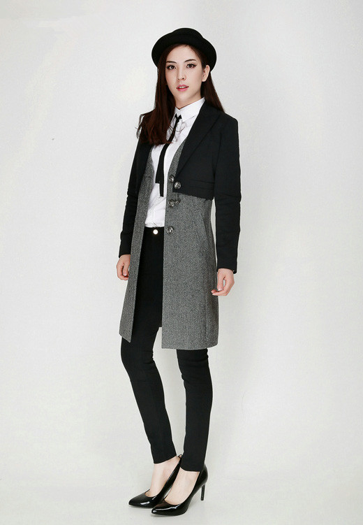 冬季女装小西装搭配灰色长款风衣W7o服装批发市场网